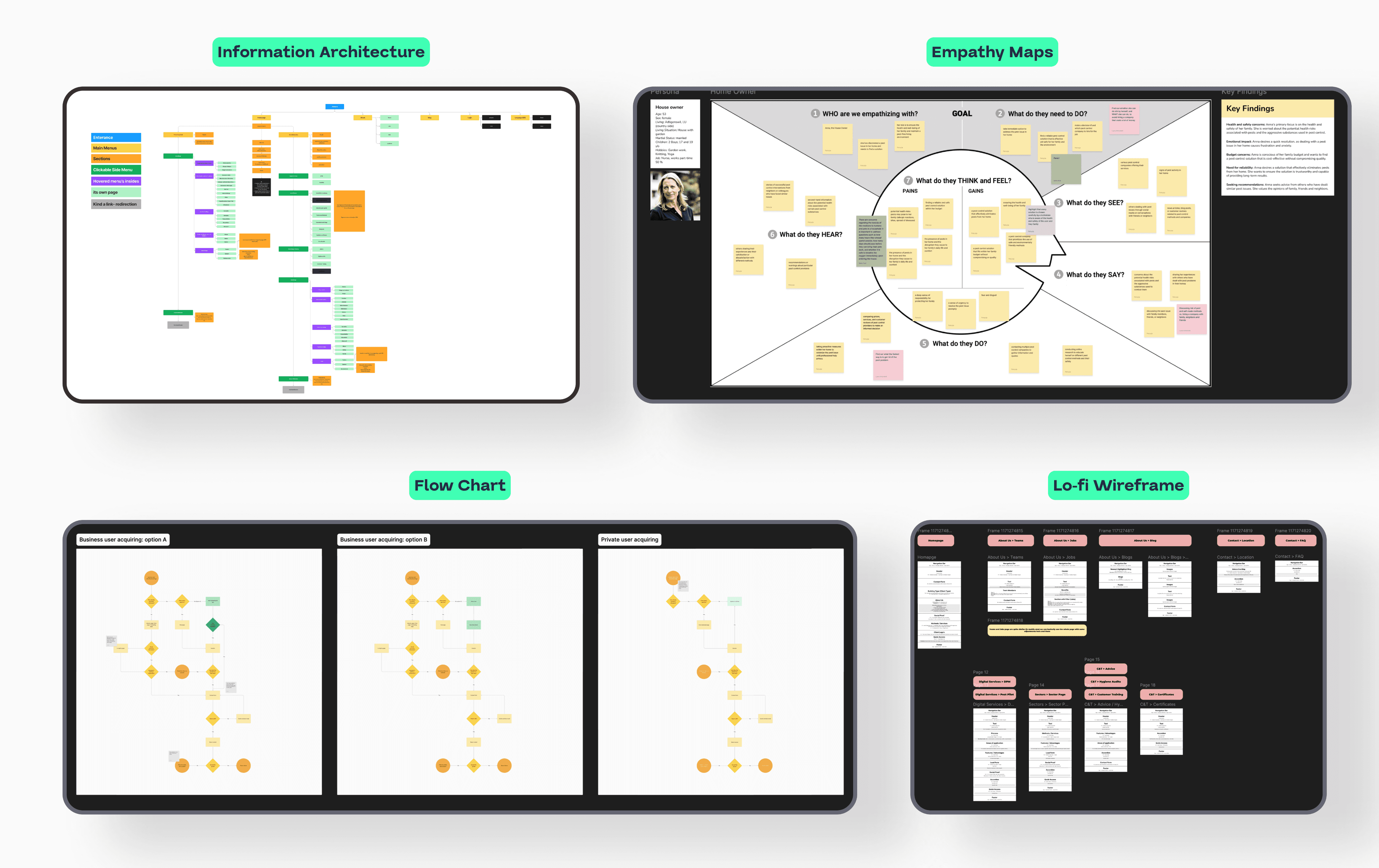 To address the site’s navigation issues, I conducted extensive research and created a highly detailed Information Architecture that reorganized the entire website. This new structure eliminated confusion, reduced dead ends, and established clear pathways for discovering services, identifying pests, and making contact.